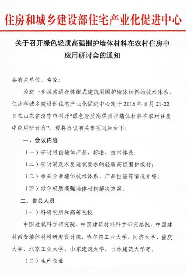 行业要闻:绿色轻质高强围护墙体材料在农村住房中应用研讨会通知