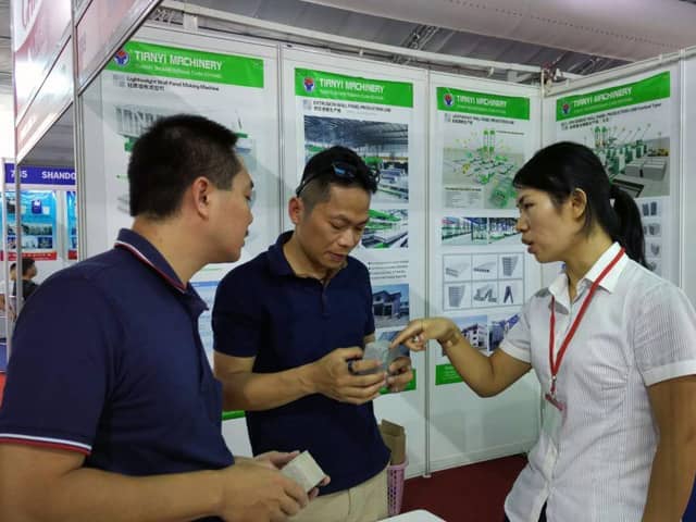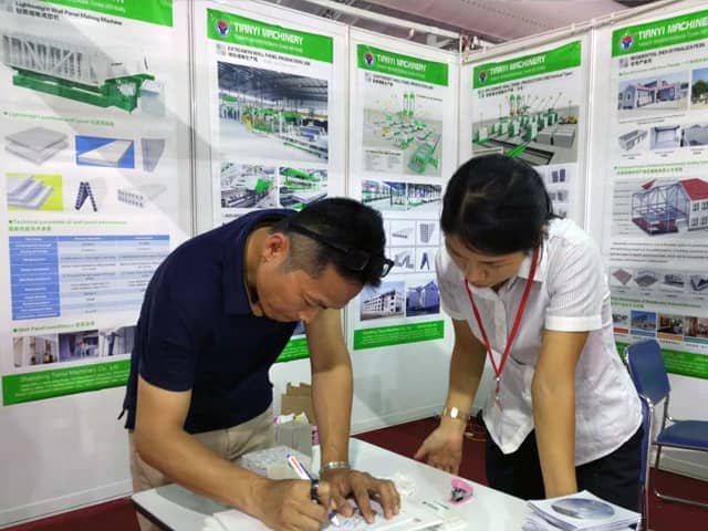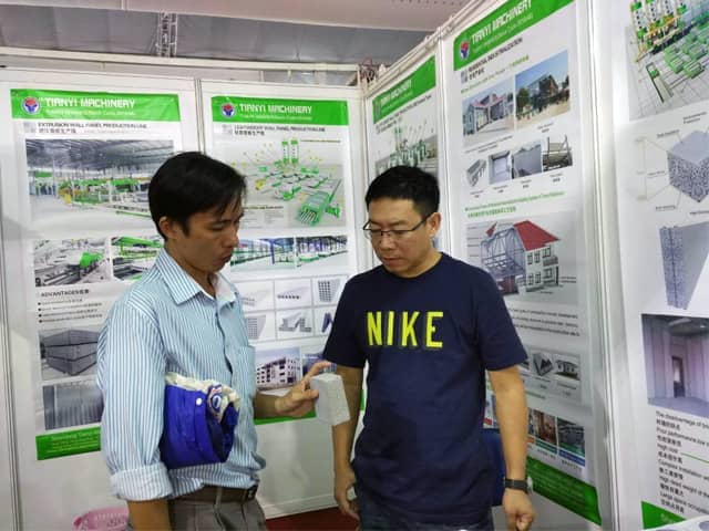 越南是亚洲经济发展速度的国家之一。近年来,越南正加大对基础设施建设和主要城市居民住宅的改造力度,绿色建筑建材装备缺口巨大,为适应市场需求,优发国际机械携绿色建材设备参展了此次展会。展会期间,外贸销售部李经理,认真对待每位来访的客户,详细向其介绍优发国际机械专利产品轻质墙板生产线,复合墙板生产线,保温装饰一体化板生产线等产品的优势,以及设备在东南亚地区建筑建材市场的影响,展会现场就有多数客户,初步签订了轻质墙板生产线、复合墙板生产线加工生产订单。