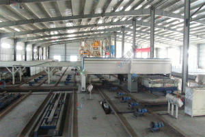 10.墙板机双向开合,采用卯榫工艺焊接,确保大板焊接厚度以至,大板经四面刨铣,能保证生产线上的模车一至,以便于后期整体上成型,自动抽芯机,自动涂油机的安装。