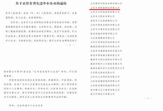 山东优发国际机械被评为全省先进中小企业表彰链接:http://www.smesd.gov.cn/view/zhongyaotongzhi/315751.html